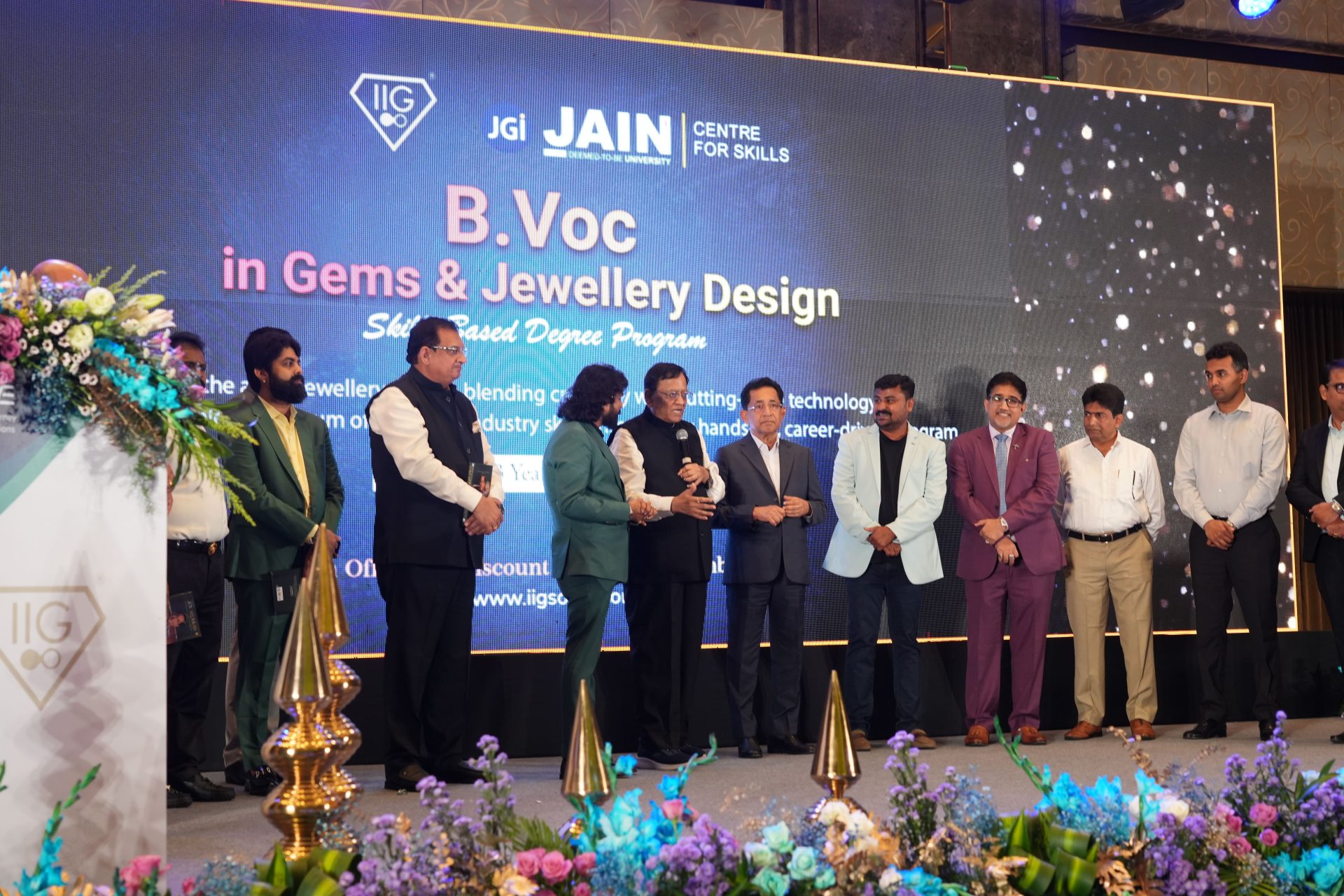 A landmark moment as IIG South unveiled its new B.Voc in Gems & Jewellery Design degree program, in collaboration with Jain (Deemed-to-be) University, officially launched by Dr. Easwaran S Iyer, Vice Chancellor of Jain University.